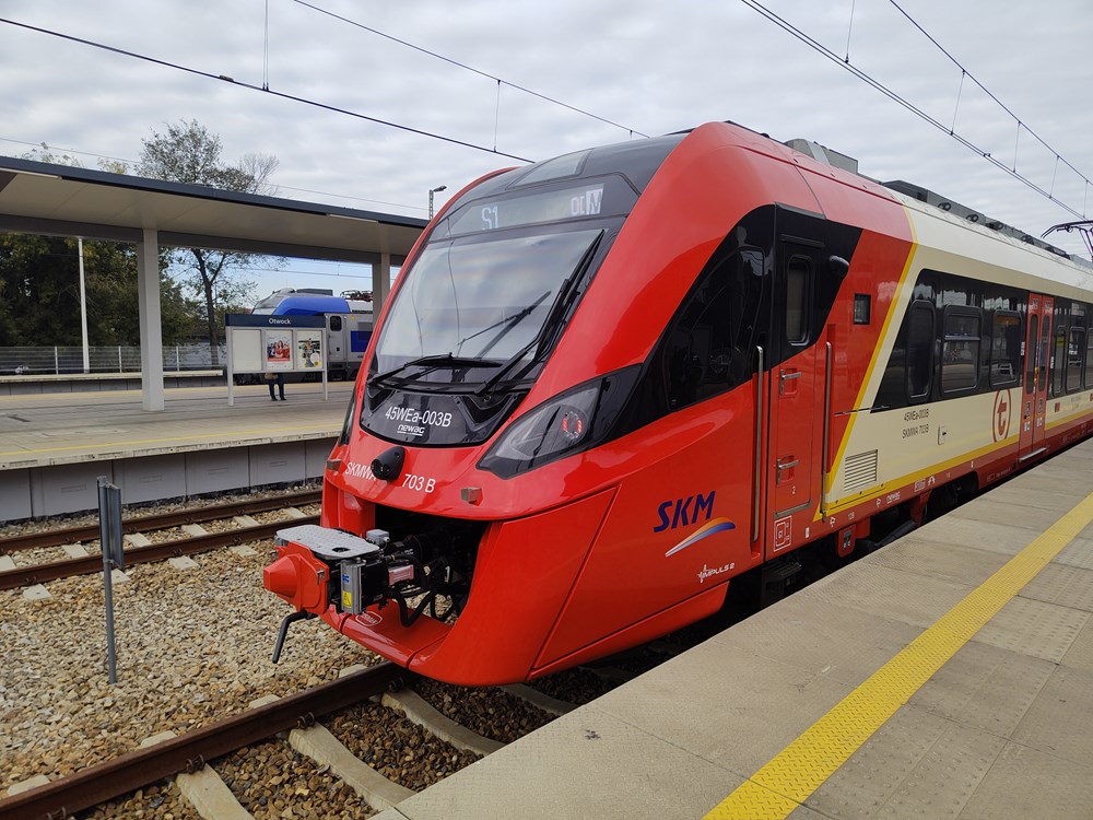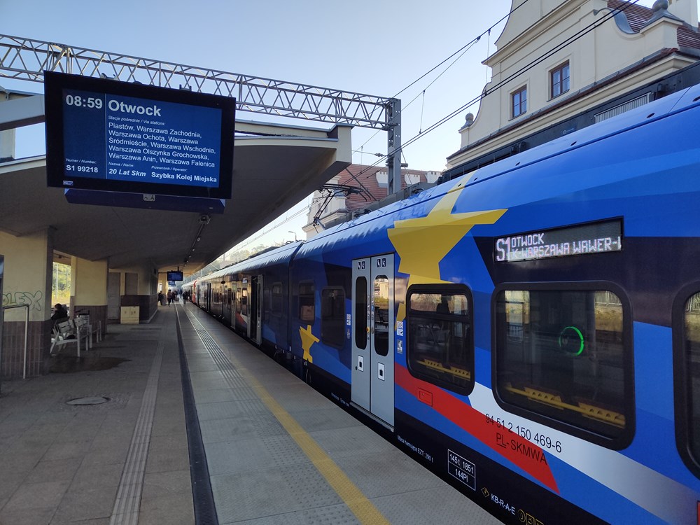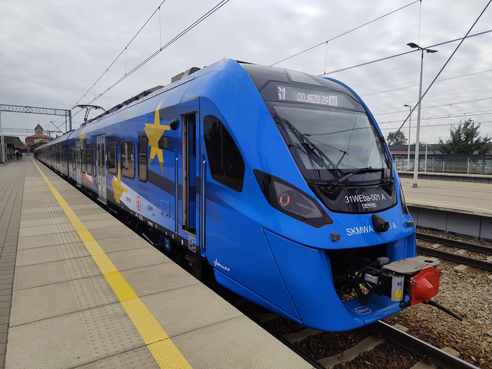 Impuls 2 (31WEb-001) w barwach reklamujących Fundusze Europejskie. Nie był to wybór przypadkowy. – Właściwie cała SKM została zbudowana na taborze nowo kupowanym ze wsparciem unijnym, podobnie jak inni przewoźnicy samorządowi. Komisja Europejska po 2004 r. mocno zachęcała nowe państwa członkowskie do zwiększania wydatków na transport szynowy. Za pieniądze unijne kupiono mnóstwo pojazdów. Był to bardzo istotny wpływ na podejście samorządów do transportu szynowego – przypomniała prezes. Dziś SKM korzysta z
