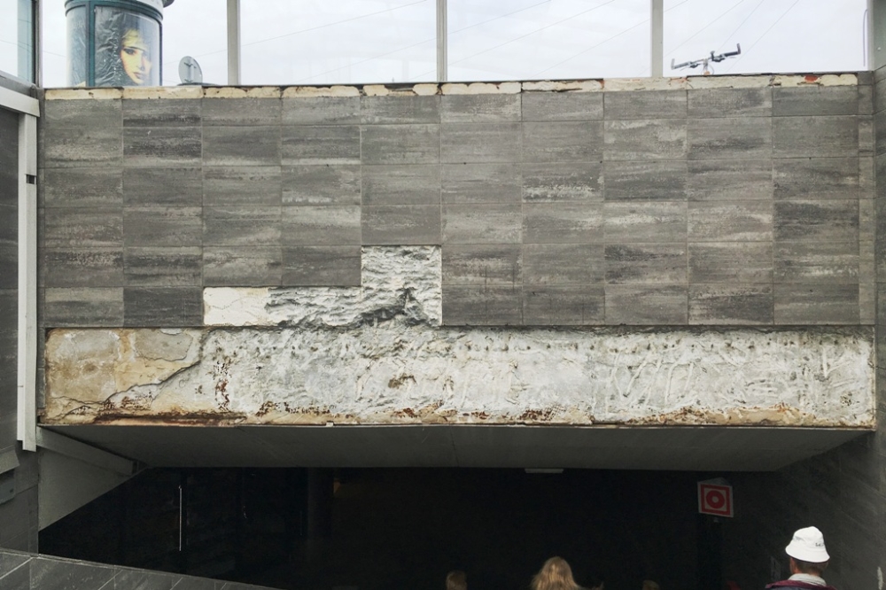 Metro Warszawskie prowadzi awaryjną naprawę okładzin przy wejściu na stacji Ratusz. Płytki, z uwagi na nieszczelność ściany, zaczęły odpadać, stanowiąc zagrożenie dla bezpieczeństwa podróżnego.
