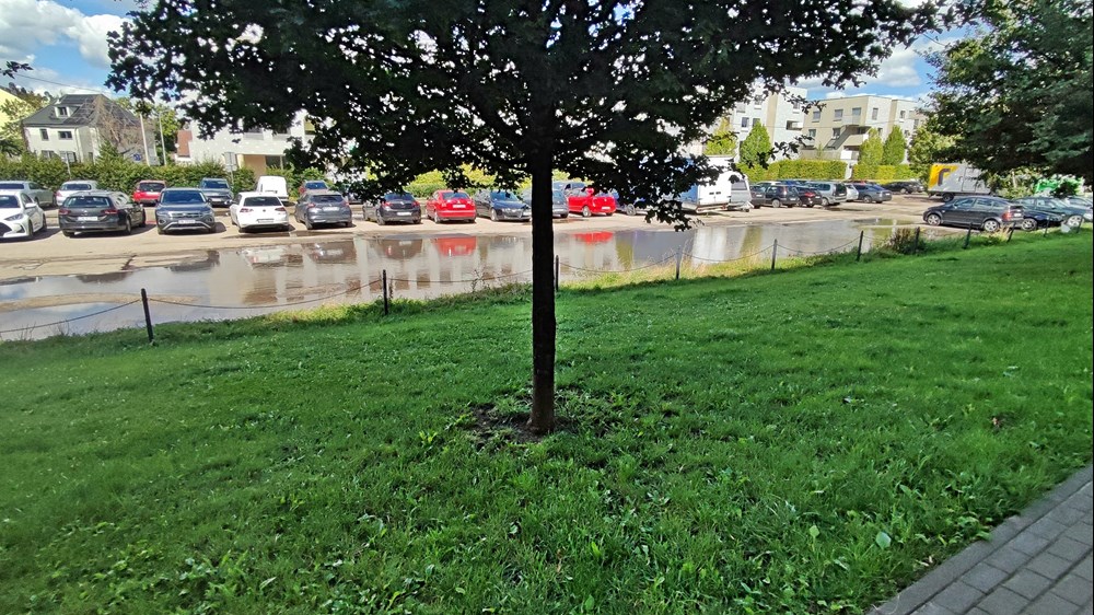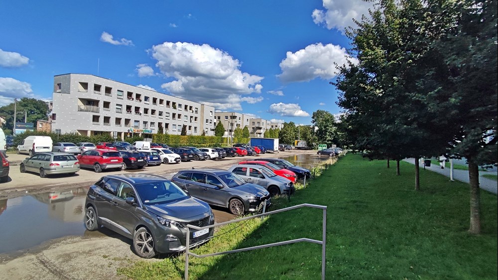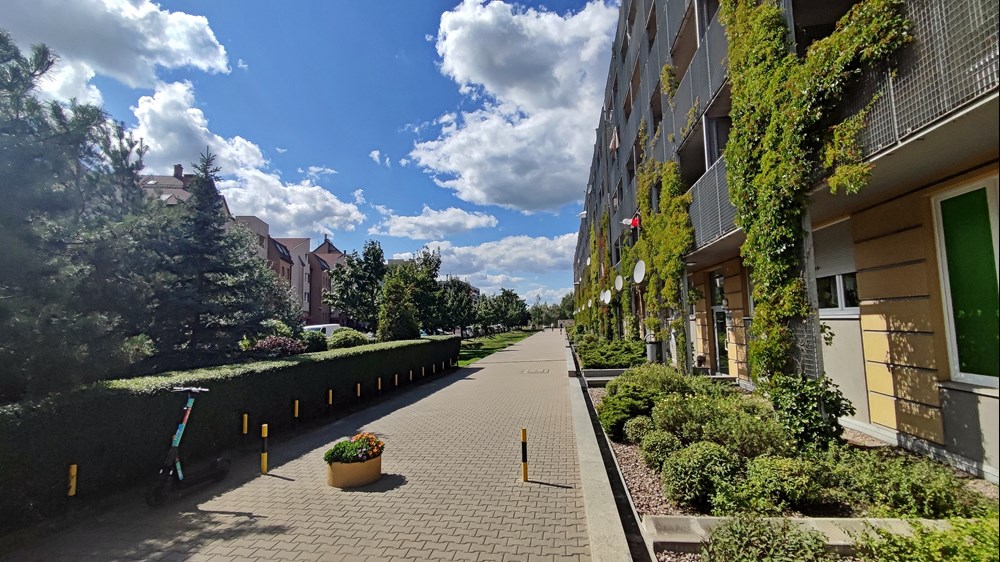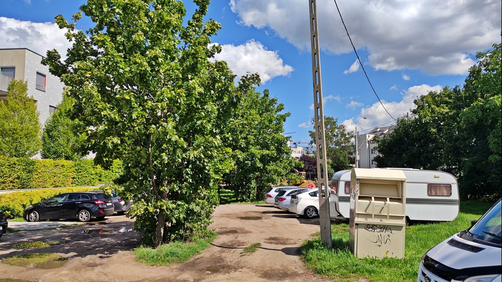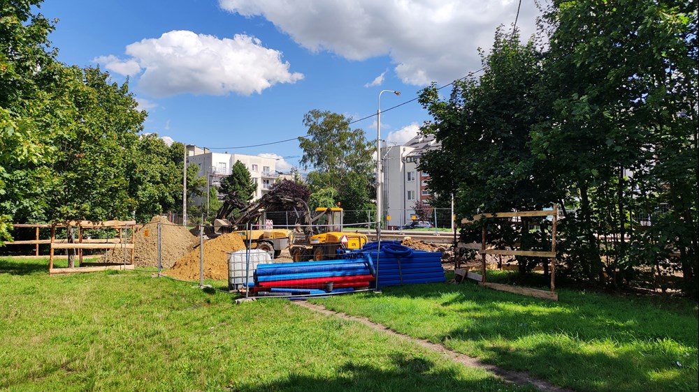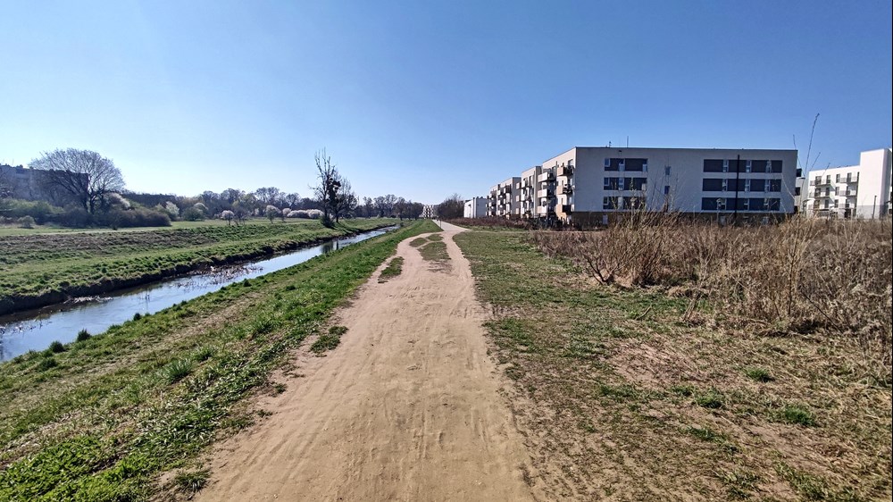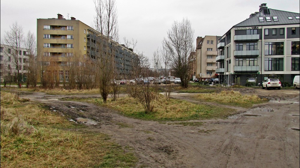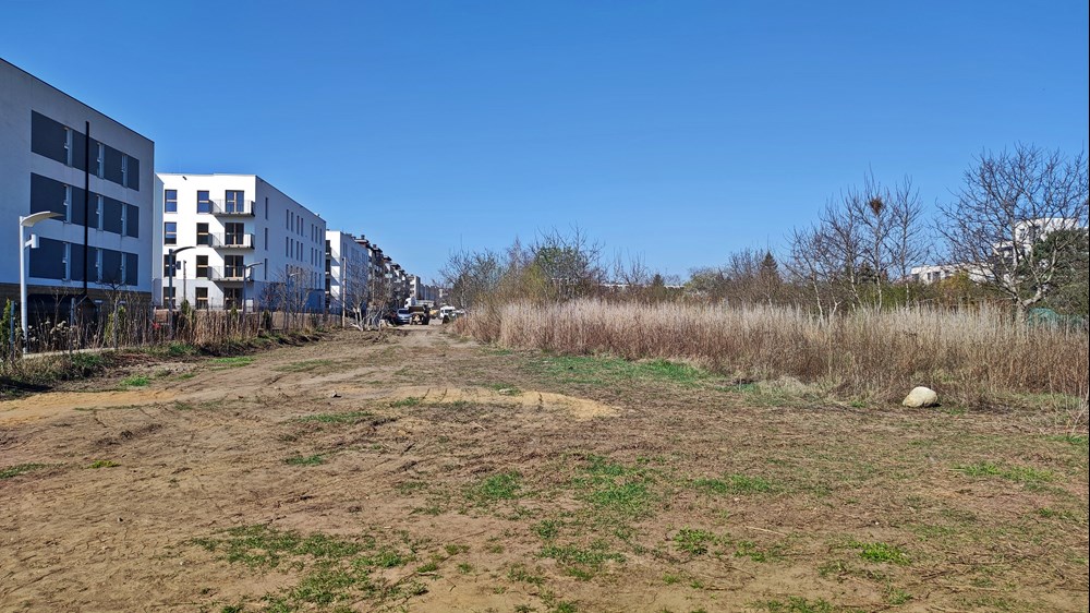 Fot. Daniel Siwak | Od lat między blokami zarezerwowany jest korytarz pod planowaną trasę tramwajową Uczestnicy konsultacji zwracali uwagę także m.in. na niezaplanowanie drogi wzdłuż trasy tramwajowej oznaczający brak możliwości uruchomienia komunikacji zastępczej, dużą odległość od zabudowań generujących potoki pasażerskie oraz likwidację ogródka plażowego przy pętli Klecina. Jego plusem miałoby być m.in. mniejszy hałas między blokami przy ul. Krzyckiej, większa liczba miejsc parkingowych, nieoddziaływanie na park Krzycki czy możliwość rozwożenia przez tramwaj worków z piaskiem w czasie powodzi.